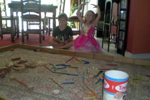 When I came downstairs yesterday morning Kyria ran up to me and said “Dad! Dad! Come and see Ant City!” In response to the number – a handful or two – of ants scurrying around on the living room floor, she and Ian had built an entire block city to retrain them as humans. They had provided a barracks to live in, a school, a playground, even a football pitch.