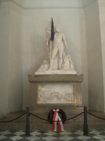 Nine years after Maria Theresa died the French Revolution began, and then Napoleon Bonaparte came to power in France, and a different kind of world began. Europe was torn apart. The rulers were fighting each other for their lives, and in some countries local people rose up against them. One such place was the Tyrol, where a man called Andreas Hofer led a local rising against Bonaparte. He was captured and killed by the French (Bonaparte is reported to have said: “give him a fair trial and then shoot him”), but this memorial was built for him in the same church as Maximilian I’s tomb: