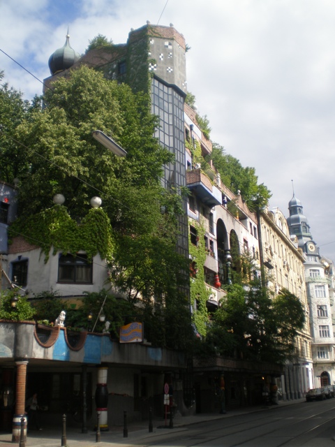 He also designed buildings, often with plants, which he called “tree tenants”, growing out of them (another thing he said was “we must restore to nature territories which man has illegally occupied”). There are two of his buildings in the middle of Vienna. One is a block of flats, with a crowd of people who admire his work hanging around it (only the tenants are allowed inside):