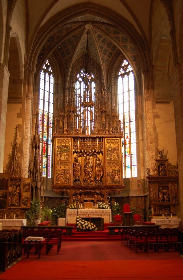 The church of St. James (which is the second largest in Slovakia, after the one I saw yesterday in Košice – though not that big really) has a huge golden altar which was carved by a local carving master called Paul about 500 years ago. He didn’t use a single nail to hang this together – it was all done by fitting the wood: