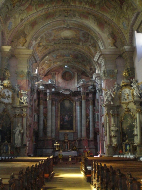 That’s beautiful, but around the corner there was another church (in baroque style, not quite so old) which was full of gorgeous light and even more colorful: