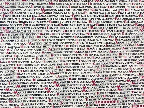 These are the names of the Czech Jews who died in the camps; the number, I am told, is 80,000, but whatever the number it’s overwhelming. It’s like the Menin gate at Ypres; of course you can’t rank atrocities, but at least the 55,000 named on the Menin gate died fighting for King and Country, not just murdered in cold blood.