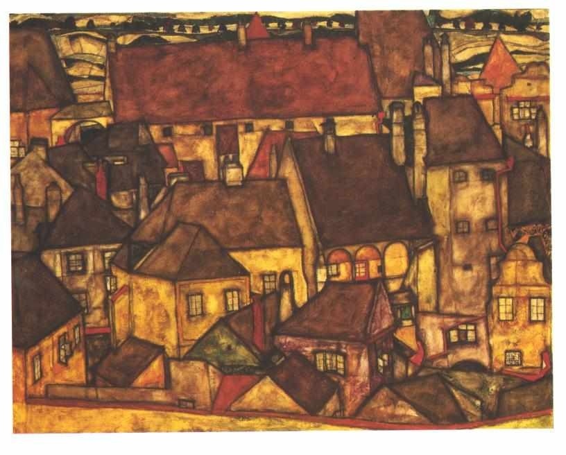 The Viennese painter Egon Schiele lived here for three months in 1910, until the townsfolk slung him out for his, erm, Bohemian lifestyle and for painting pre-pubescent girls. Naturally today one of the town’s main draw cards is a museum bearing his name. This is what Český Krumlov looked like to him: