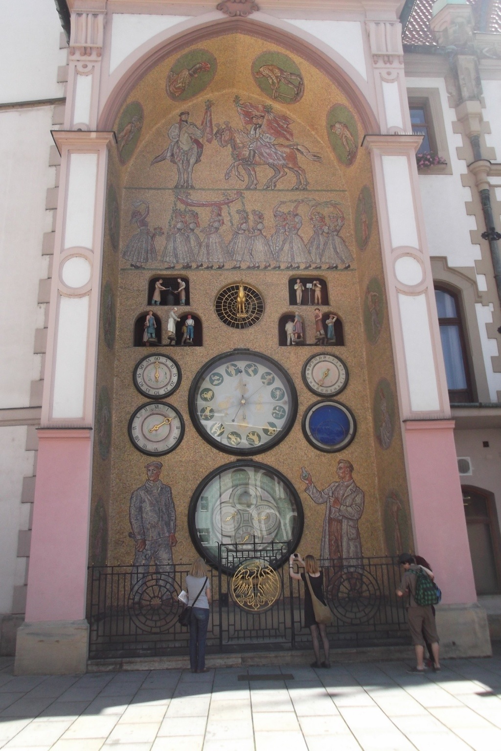 In the main town square there was an astronomical clock – the other one in the Republic besides the well-photographed one in Prague. This one was shot up by retreating German troops in 1945; the Communists replaced the saints, as you can probably see, with figures from the vanguard of the proletarian revolution. Every hour on the hour, the blacksmith at top left strikes his anvil to the sound of a bell…